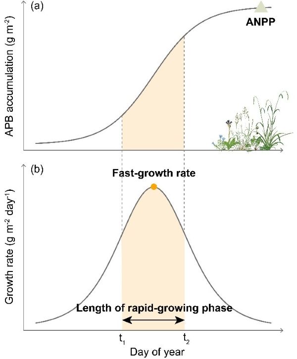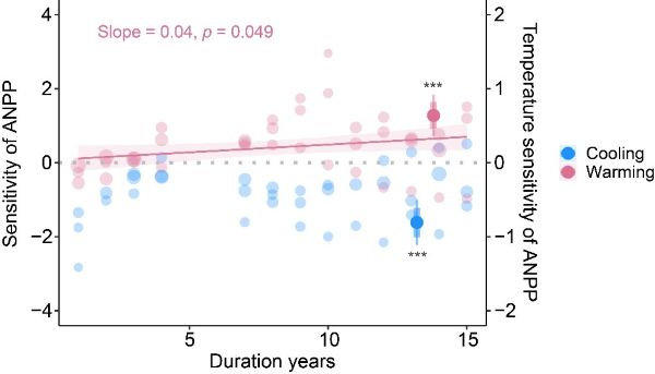 气候变化预计将在未来数十年持续加剧,可能对反映生态系统功能及固碳能力的重要指标-地上净初级生产力(ANPP)产生重要影响。然而,目前关于十年尺度以上的长期降温效应研究仍较为匮乏,且温度变化通过物候级联影响植物生长与ANPP的内在机制尚不清晰,导致与降温相关的长期气候变动效应仍需系统探究。